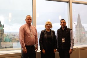 Lana Payne, Unifor National President and Mike Van Boekel, Plant Chairperson GM CAMI share an update with the Local 88 Membership.